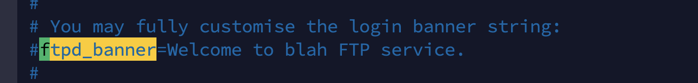 /etc/vsftpd.conf是否存在如下内容 ftpd_banner=” Authorized users only. All activity may be monitored and reported.”