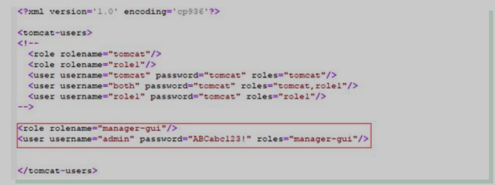 <user username="admin" password="password" roles="manager-gui,admin-gui"/>