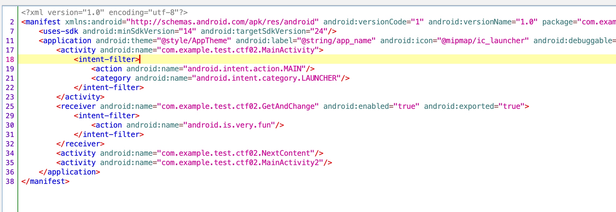 这里发送了一个广播,action就是密码,我们把密码(android.is.very.fun)放进去,最后获取到flag{08067-wlecome}