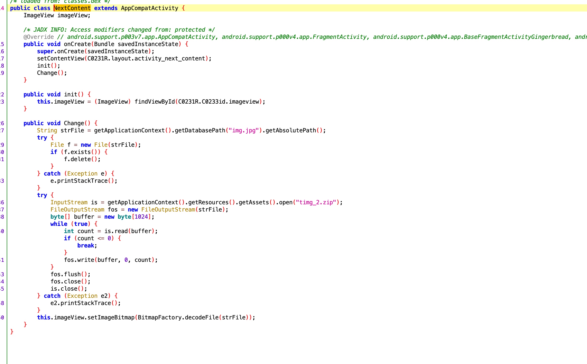 查看java源码,发现time_2.zip,我们解压apk获取到zip包,但发现无法解压,修改后缀后得到flag