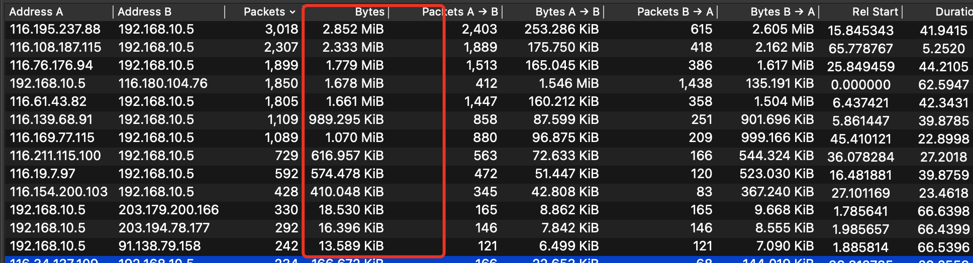 192.168.10.5内网IP被攻击了,大概有14.213MIb的数据包
