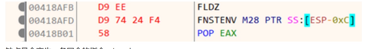 使用浮点指令 FSTENV,缺点是会损坏栈的0xc大小的数据