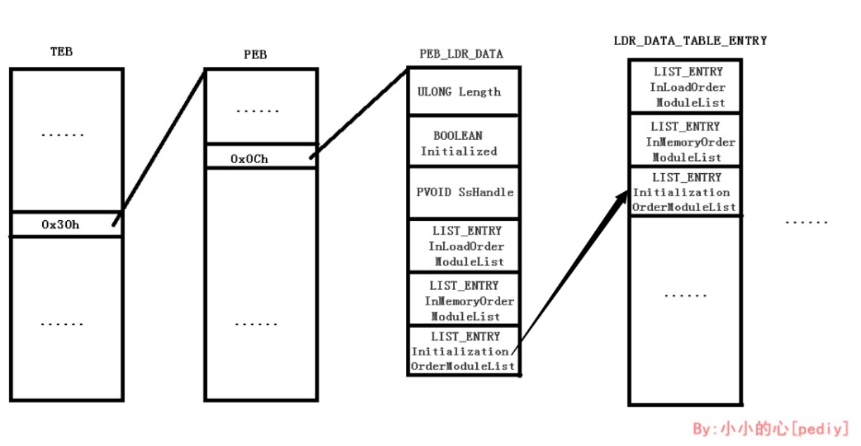 * mov eax, [eax + 0x0C]; // 获取 PEB_LDR_DATA