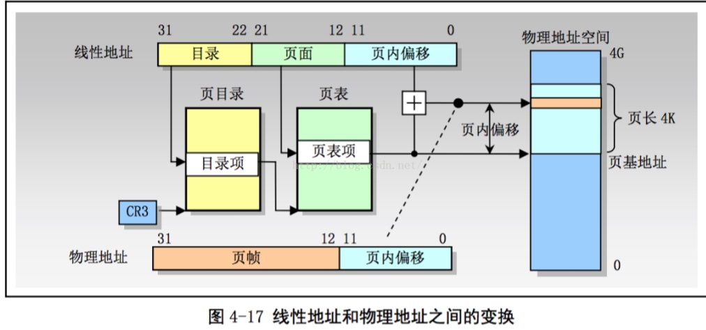 没有开启PAE[10-10-12]:CR3(页目录表地址) -> 页目录项 -> 页表项 -> 物理地址