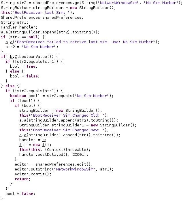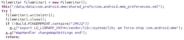 恶意软件验证Build.FINGERPRINT值是否包含“JPKJ2”,并停止消息应用程序: