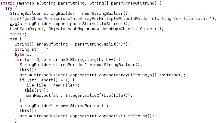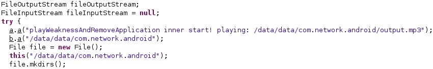 MP3文件在运行时使用FileOutputStream.write函数填充。文件的权限由恶意软件设置为511