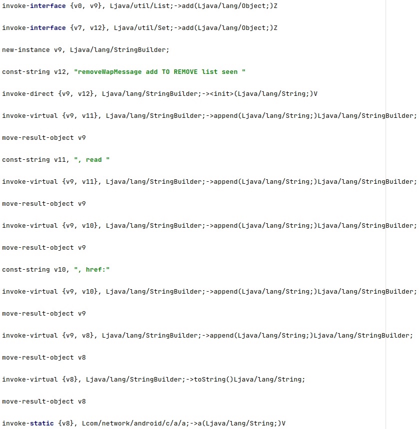 间谍软件试图删除一些WAP推送消息,这些消息可用于在手机上的浏览器中自动打开链接,而无需用户交互: