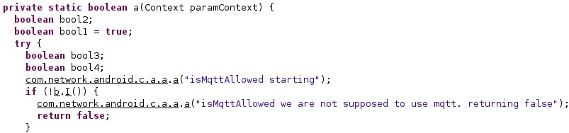 “should_use_mqtt”配置值确定是否允许代理通过MQTT与C2服务器通信,如下所示: