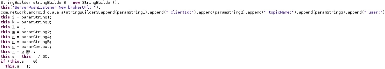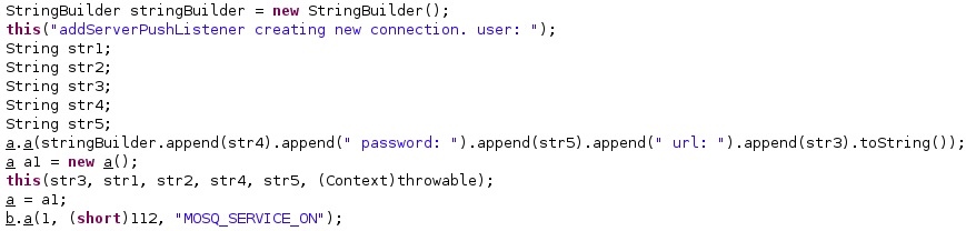 恶意软件记录包含MQTT URL、用户名和密码的消息,然后调用将启动通信的函数: