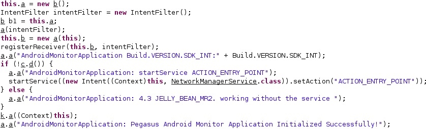 正如我们在整个分析中看到的,威胁者没有做出任何努力来隐藏APK的真正目的.下图显示了表明Pegasus已成功初始化的消息: