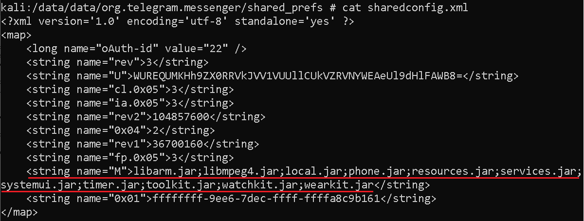 每个模块负责不同的功能。模块名称列表存储在sharedconfig.xml文件中的本地共享首选项中;见图12。